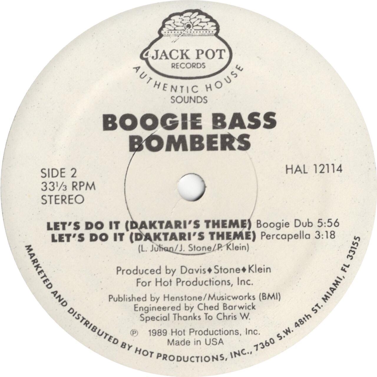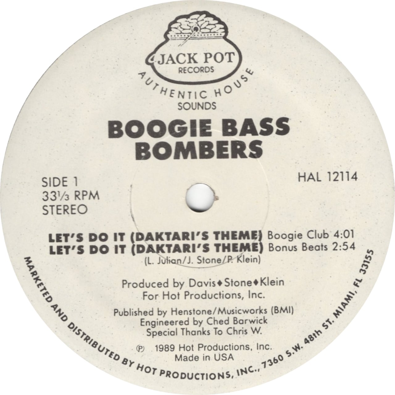 Label: Jack Pot Records – HAL 12114